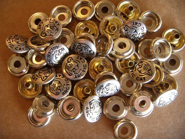 25 ct. Cat head seat snaps with female backers – nickle plated brass