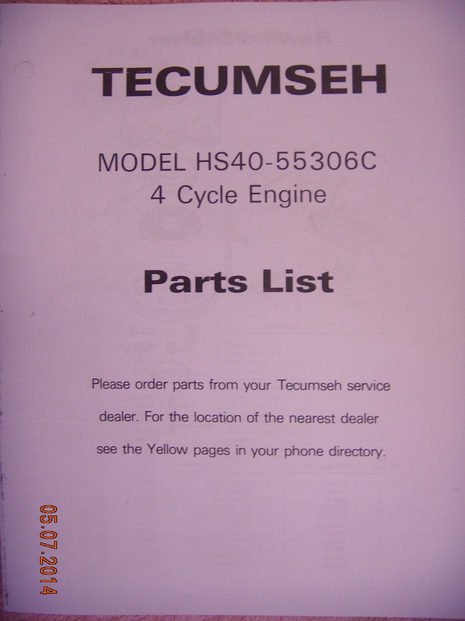 Tecumseh Model HS40-55306C 4 cycle engine parts manual. (THESE ARE COPY’S)